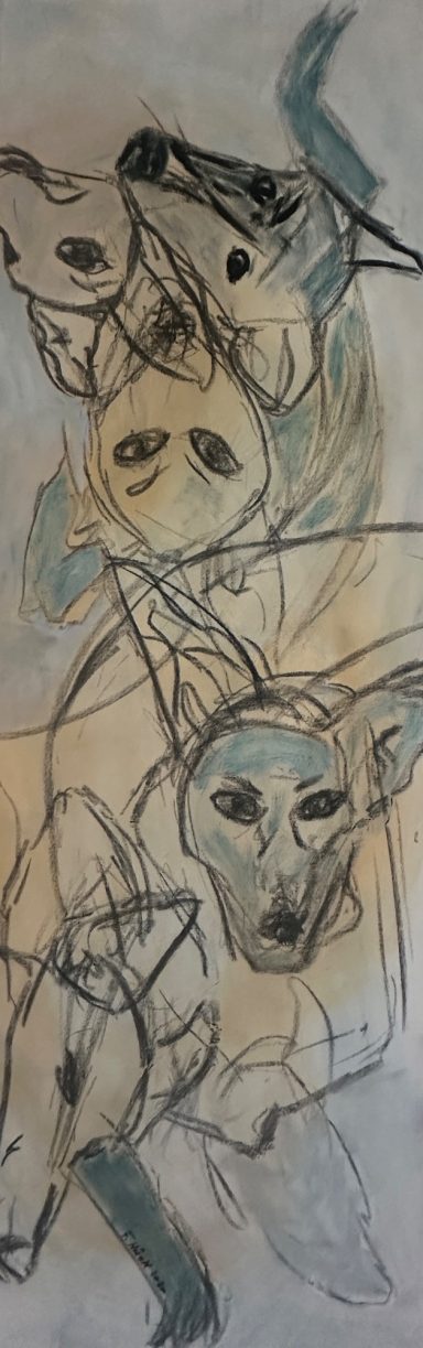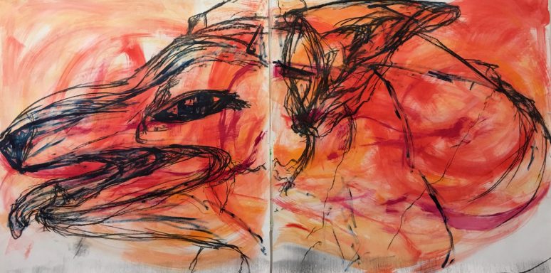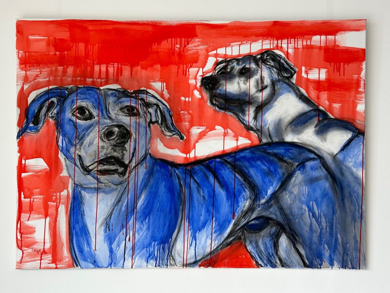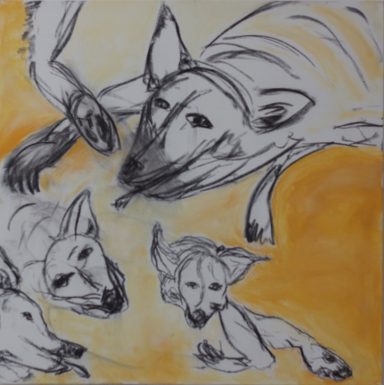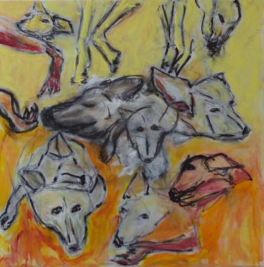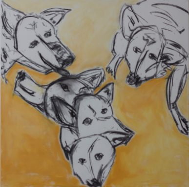 "Hund" 320 x 160 cm, 100 x 140 cm, 100 x 100 cm , 60 x 80, 60 x 90, Acryl auf Leinwand